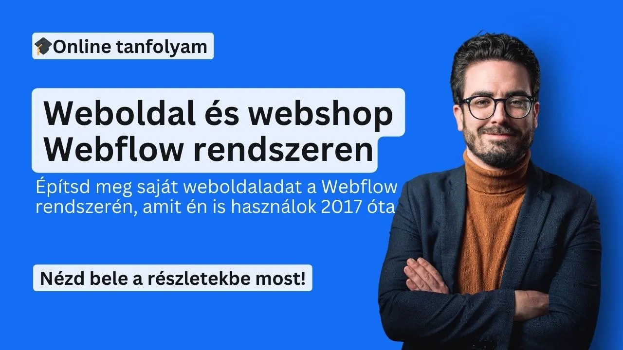 Ebben akár én is segíthetek neked kivitelezőként, vagy mentorként, de készítettem egy magyar nyelvű Webflow tanfolyamot is.